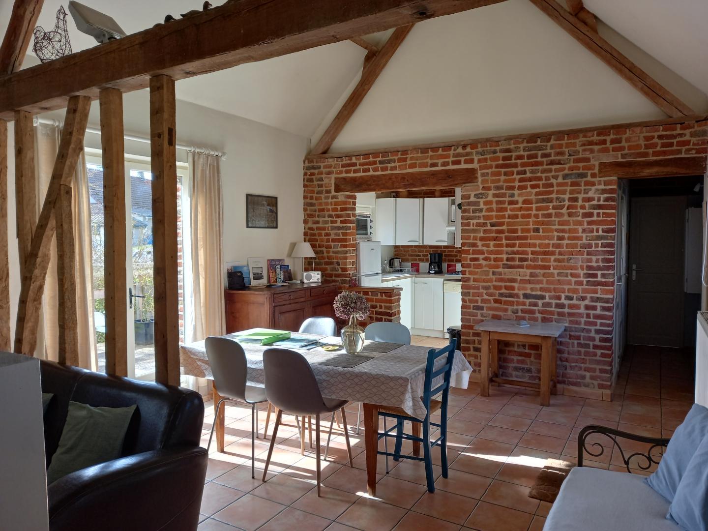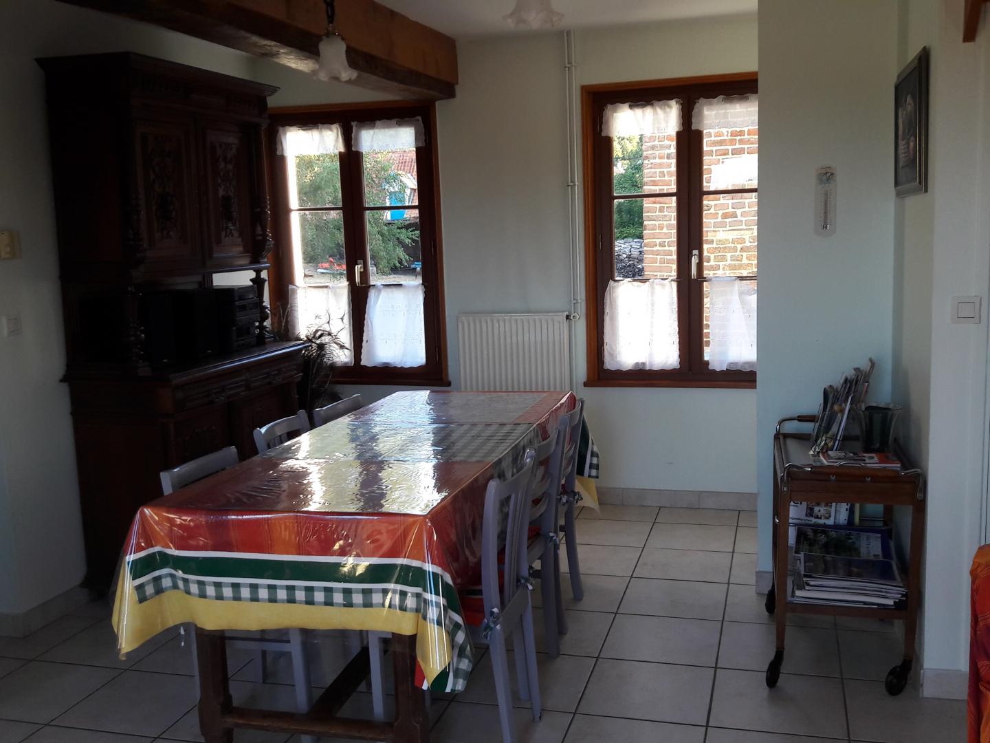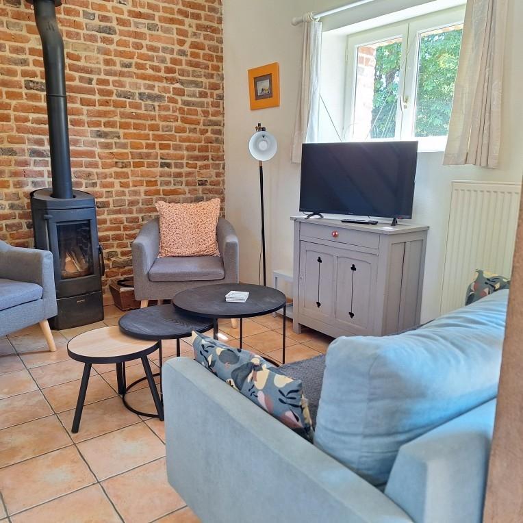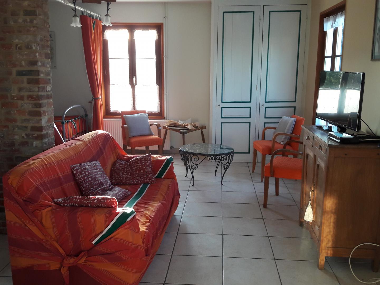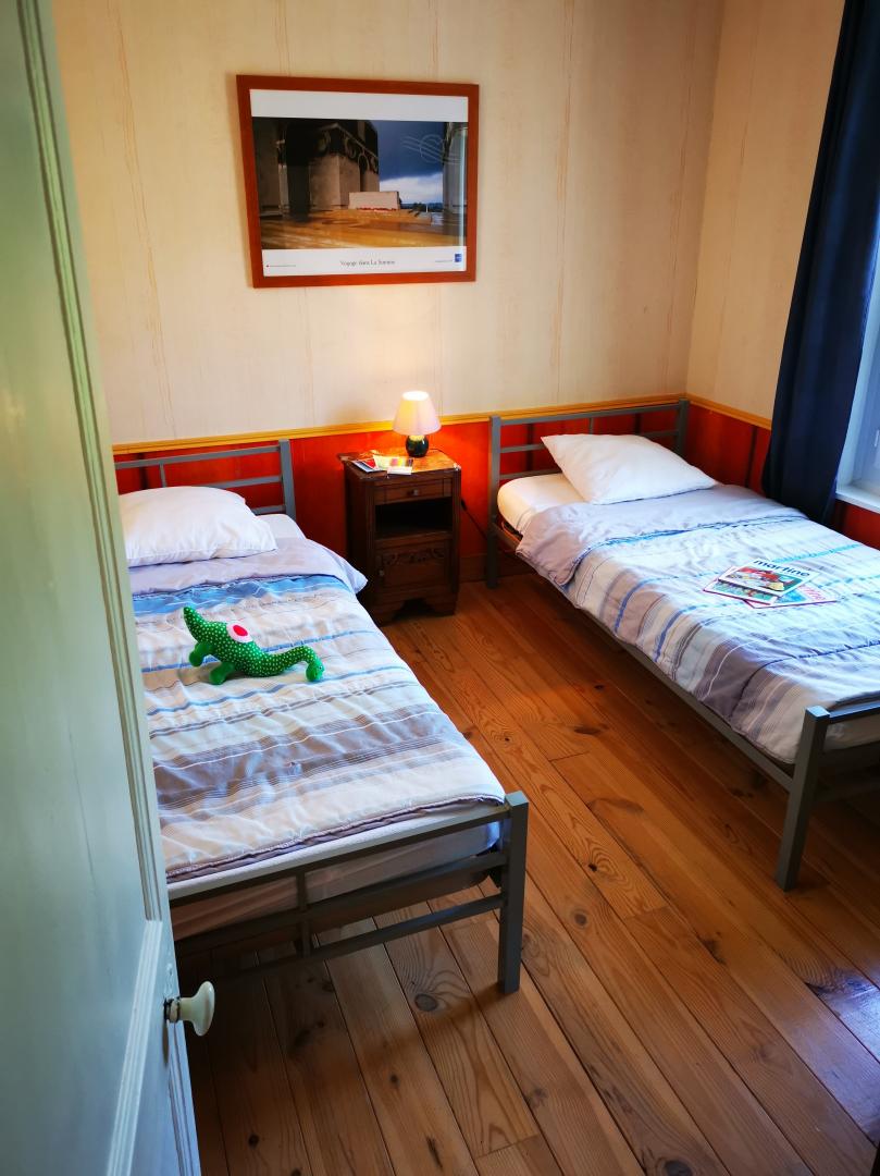 | Au coeur d'un petit village de baie de Somme à Grand-Laviers ( 5 km d'Abbeville et 12 km de St Valéry), le gîte indépendant dispose en rez-de-chaussée, d'une salle à mager avec salon et poêle à bois ouvert sur une cuisine aménagée (réfrigérateur/congélateur, cafetière filtre et à dosettes Senséo) , WC indépendant , salle d'eau , une chambre( 2 lits 90×190), une chambre (1 lit 160 ×200) et une petite salle de bain. A l étage, une mezzanine avec salle de jeux. Il y a une petite marche entre la chambre avec le lit double et le séjour et aussi entre la chambre avec le lit double et la petite salle de bain. Commerce et restaurant dans le village, réserve ornithologique, piste cyclable et circuits de randonnées, de nombreux atouts sur place pour un séjour de détente réussi. 2 vélos adultes à disposition. Abri sécurisé pour vélos. 2 gîtes dans la même propriété.Borne de recharge pour véhicule électrique à 5 km, à Abbeville. Les charges sont à régler sur place. | ||||