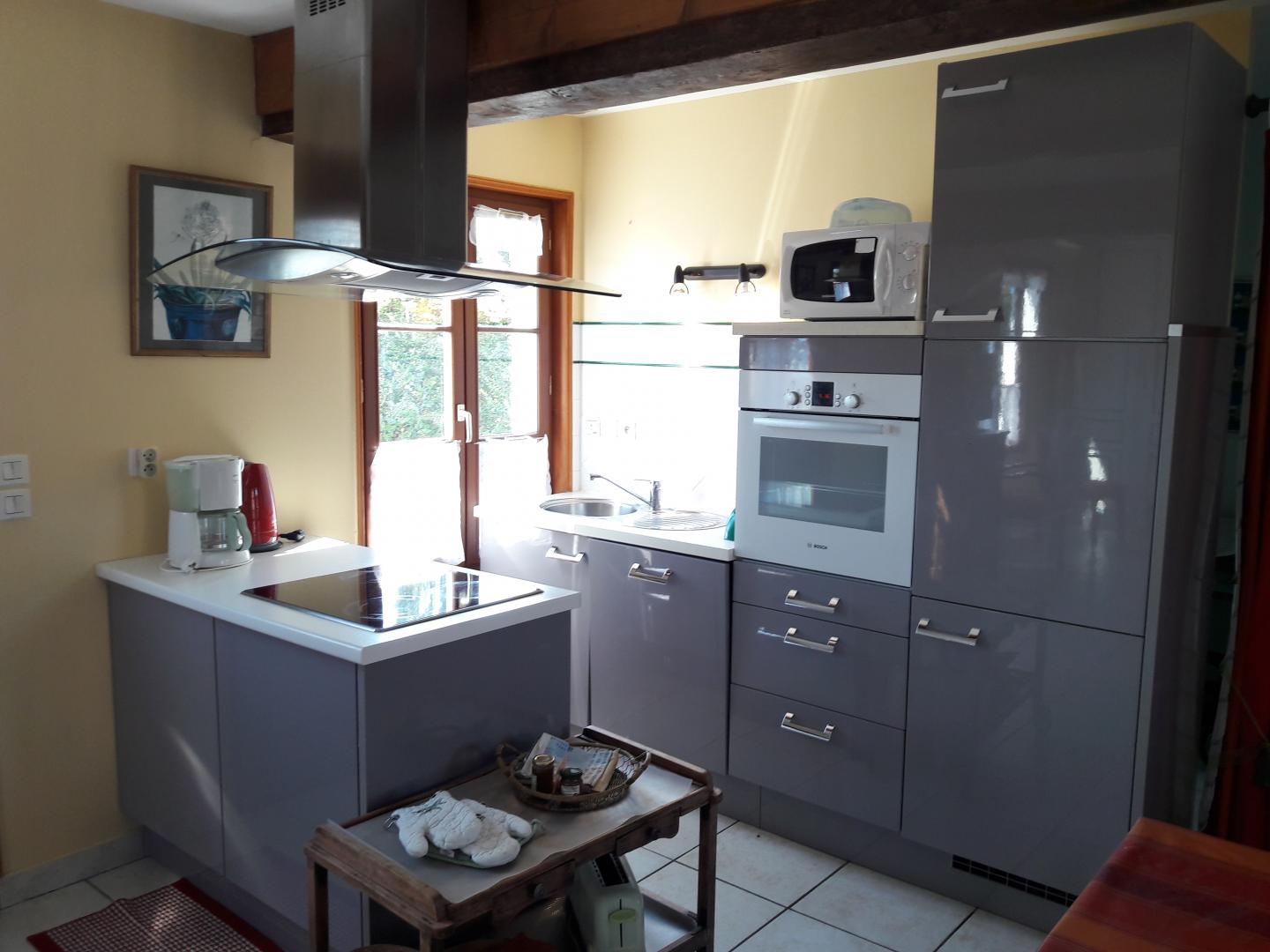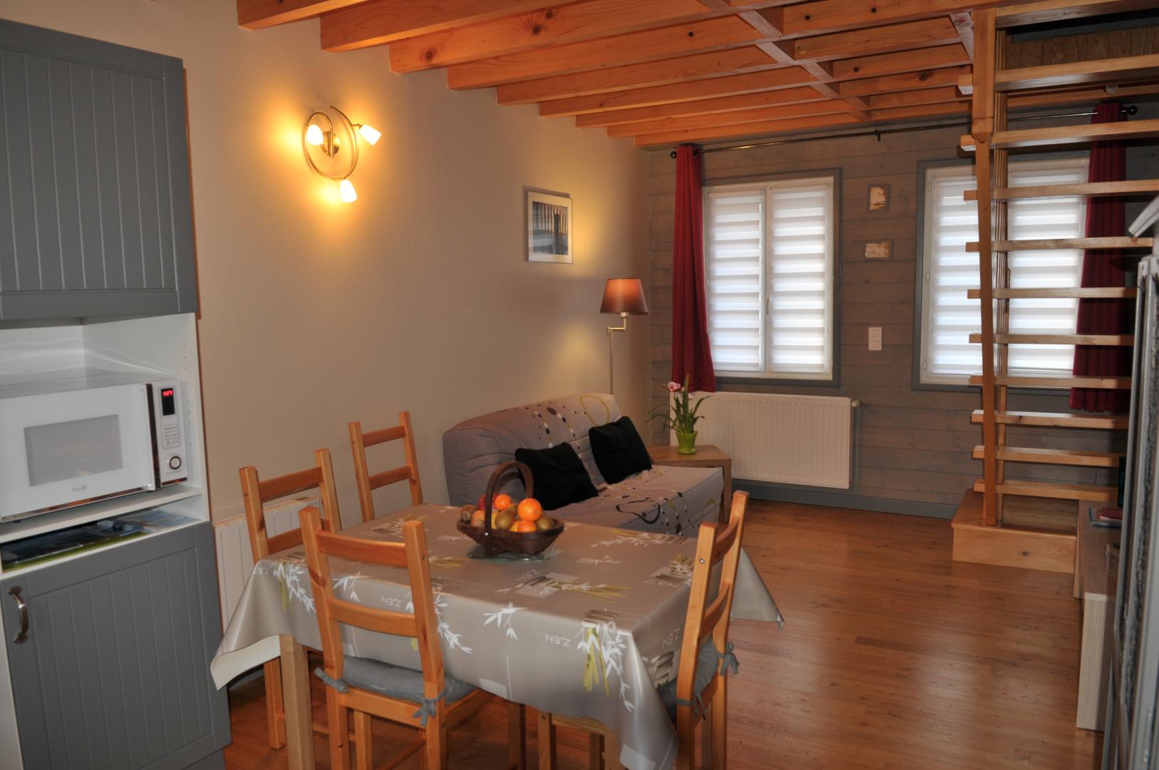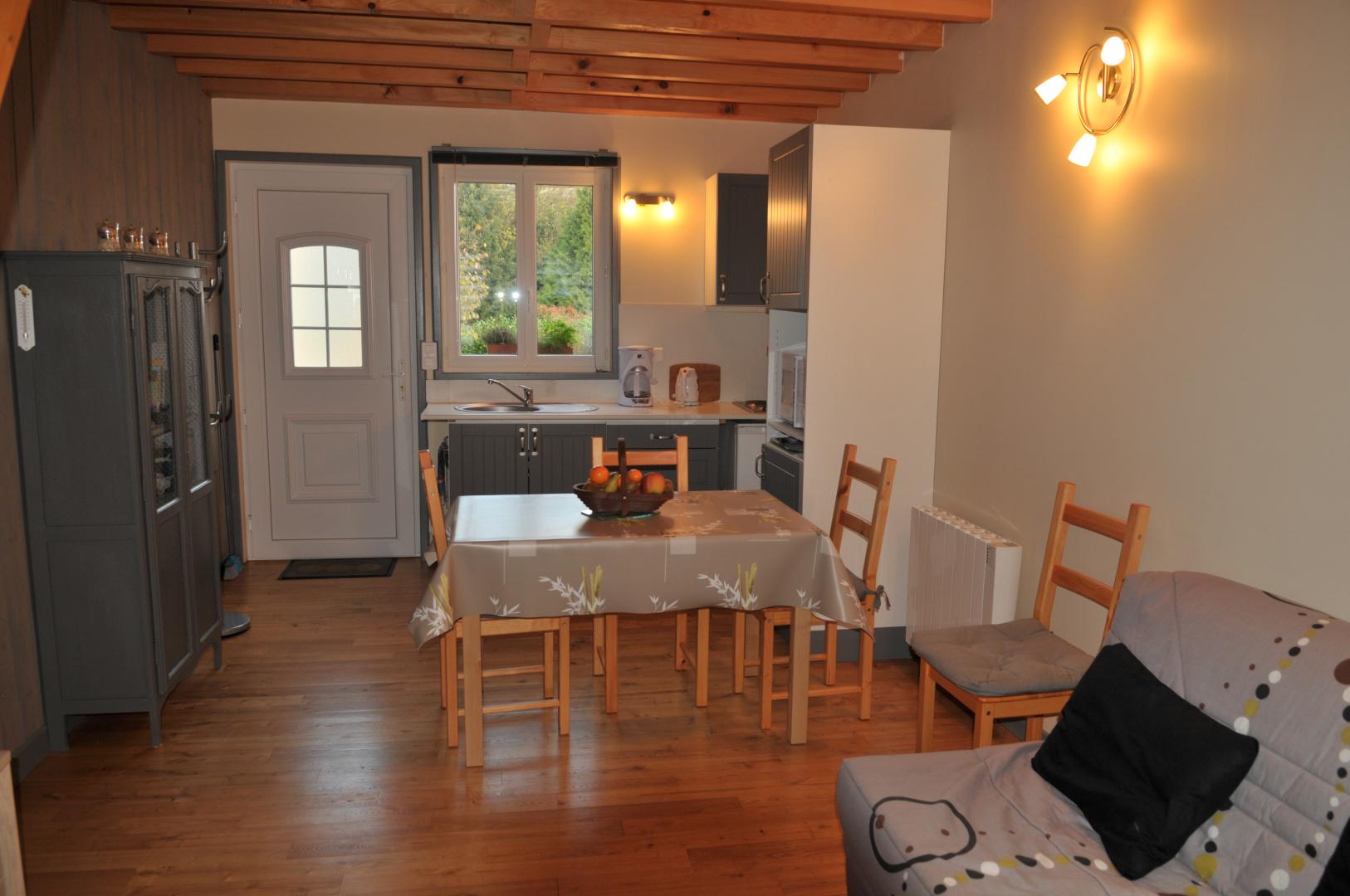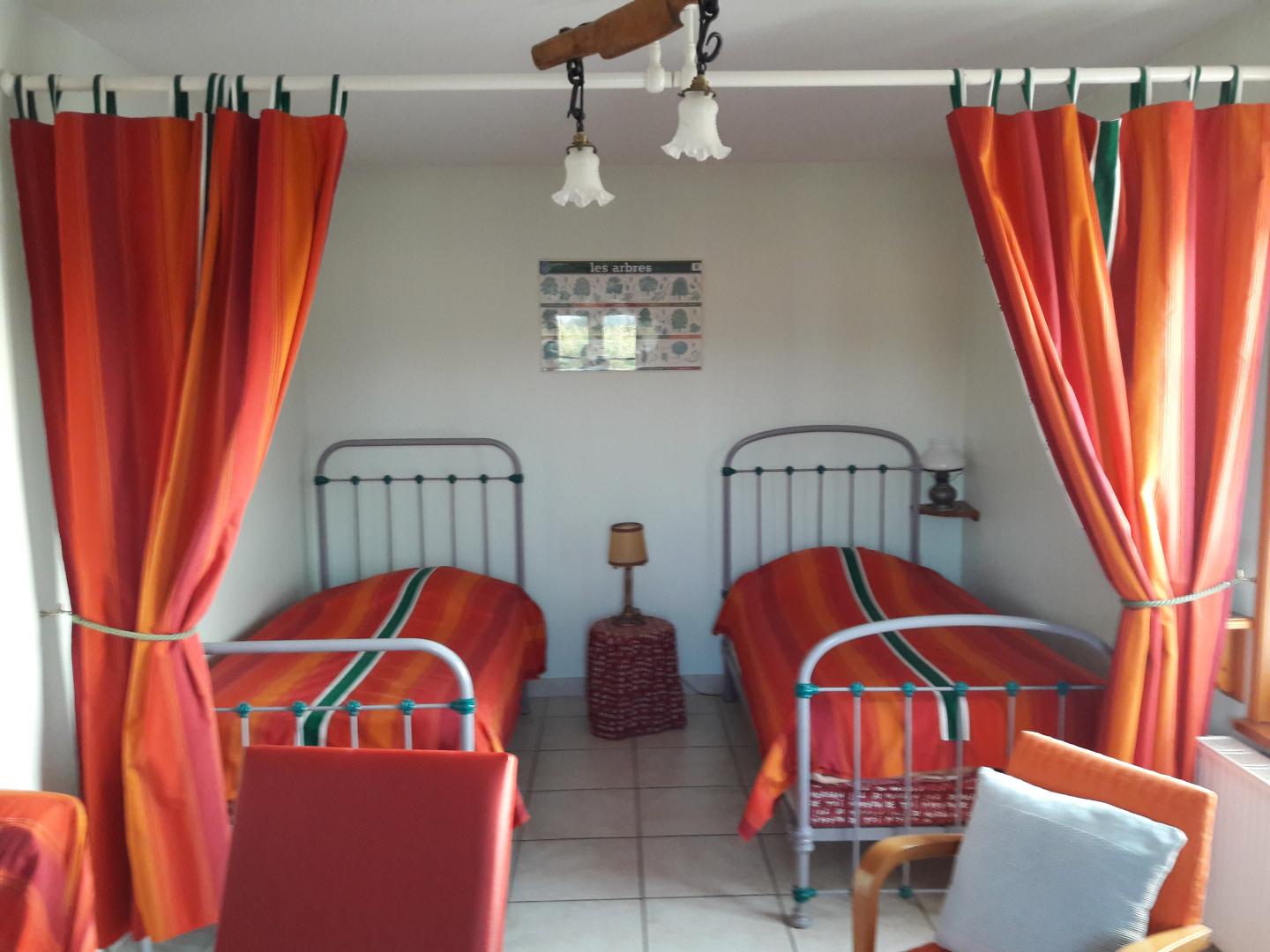 | Au coeur d'un petit village de baie de Somme à Grand-Laviers ( 5 km d'Abbeville et 12 km de St Valéry), le gîte indépendant dispose en rez-de-chaussée, d'une salle à mager avec salon et poêle à bois ouvert sur une cuisine aménagée (réfrigérateur/congélateur, cafetière filtre et à dosettes Senséo) , WC indépendant , salle d'eau , une chambre( 2 lits 90×190), une chambre (1 lit 160 ×200) et une petite salle de bain. A l étage, une mezzanine avec salle de jeux. Il y a une petite marche entre la chambre avec le lit double et le séjour et aussi entre la chambre avec le lit double et la petite salle de bain. Commerce et restaurant dans le village, réserve ornithologique, piste cyclable et circuits de randonnées, de nombreux atouts sur place pour un séjour de détente réussi. 2 vélos adultes à disposition. Abri sécurisé pour vélos. 2 gîtes dans la même propriété.Borne de recharge pour véhicule électrique à 5 km, à Abbeville. Les charges sont à régler sur place. | ||||