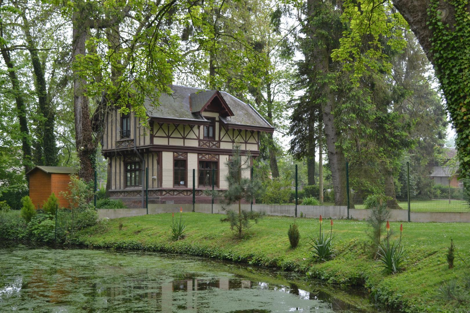 | Dans le village, à 20 km de la baie de Somme, dans une propriété entourée d'un parc arboré et de rivières, à l'écart de la demeure des propriétaires, gîte (55 m²) aménagé dans un ancien pavillon de chasse de 1830. Au rez-de-chaussée: coin cuisine aménagée (réfrigérateur/congélateur, gazinière, micro-ondes, lave linge) Pièce principale avec canapé et télévision, cheminée flamande . A l'étage, 1 chambre (1 lit 140x190), salle d'eau avec WC. Chauffage central gaz. Taxe de séjour en supplément. Abri sécurisé pour vélos et motos. Prise électrique extérieure sur place pour recharge vélos électriques. Rotonde couverte avec salon de jardin. Barbecue. Lits faits à l'arrivée. Parking dans la propriété. Chemins de randonnée dans le village. Borne de recharge pour véhicule électrique à 5 km. Restaurant à 2 minutes à pied. | ||||