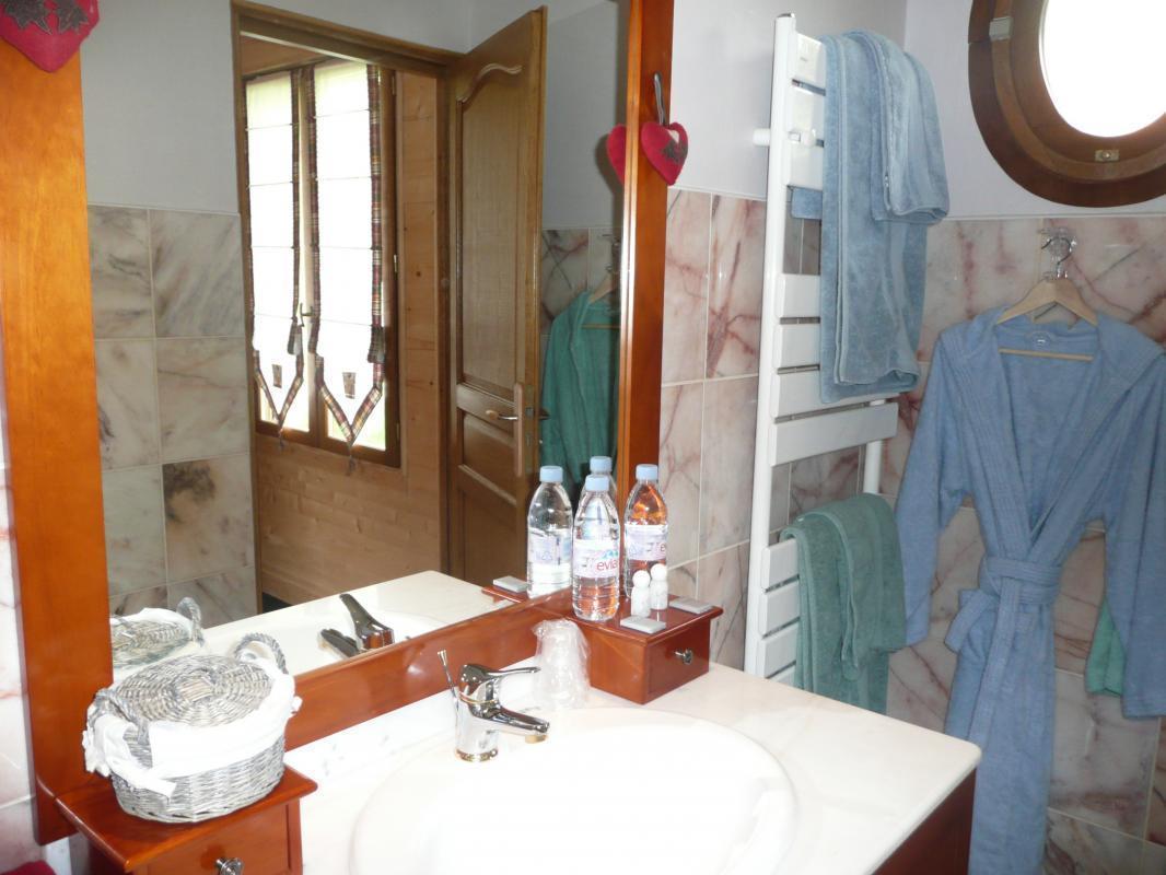 | Dans une jolie fermette, sur 4 ha avec étang et bois, entourée d'eau. 1 chambre d'hôtes en rez-de-chaussée avec accès indépendant. Une chambre ambiance montagne, allie confort et chaleur du bois : (1 lit 160x200) avec salle d'eau et WC indépendant.Petit réfrigérateur dans chaque chambre. Parking privatif fermé. Bus à 500 m. Animaux admis sous réserve. Taxe de séjour incluse dans le prix. Borne de recharge pour véhicule électrique à 4 km. | ||||
