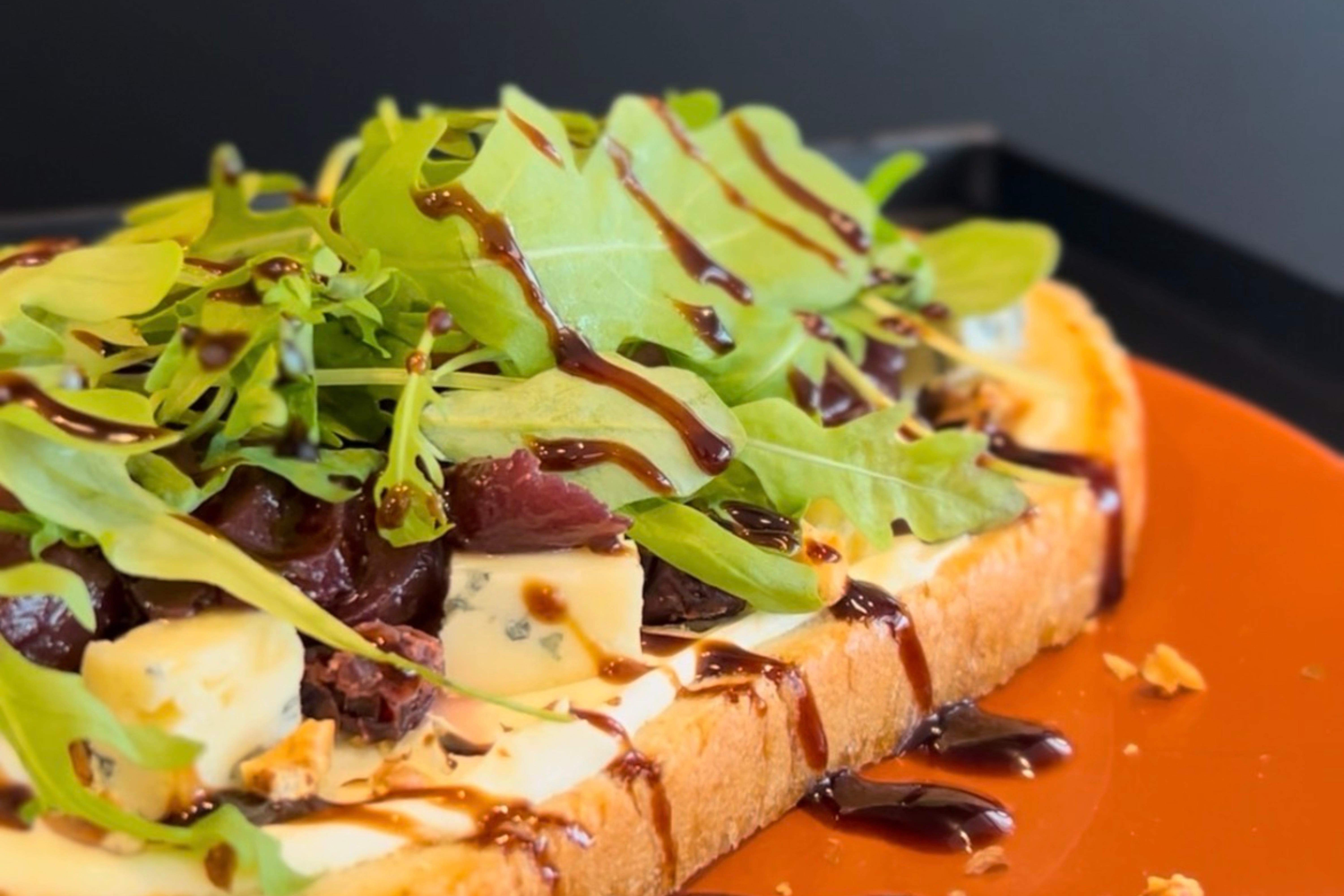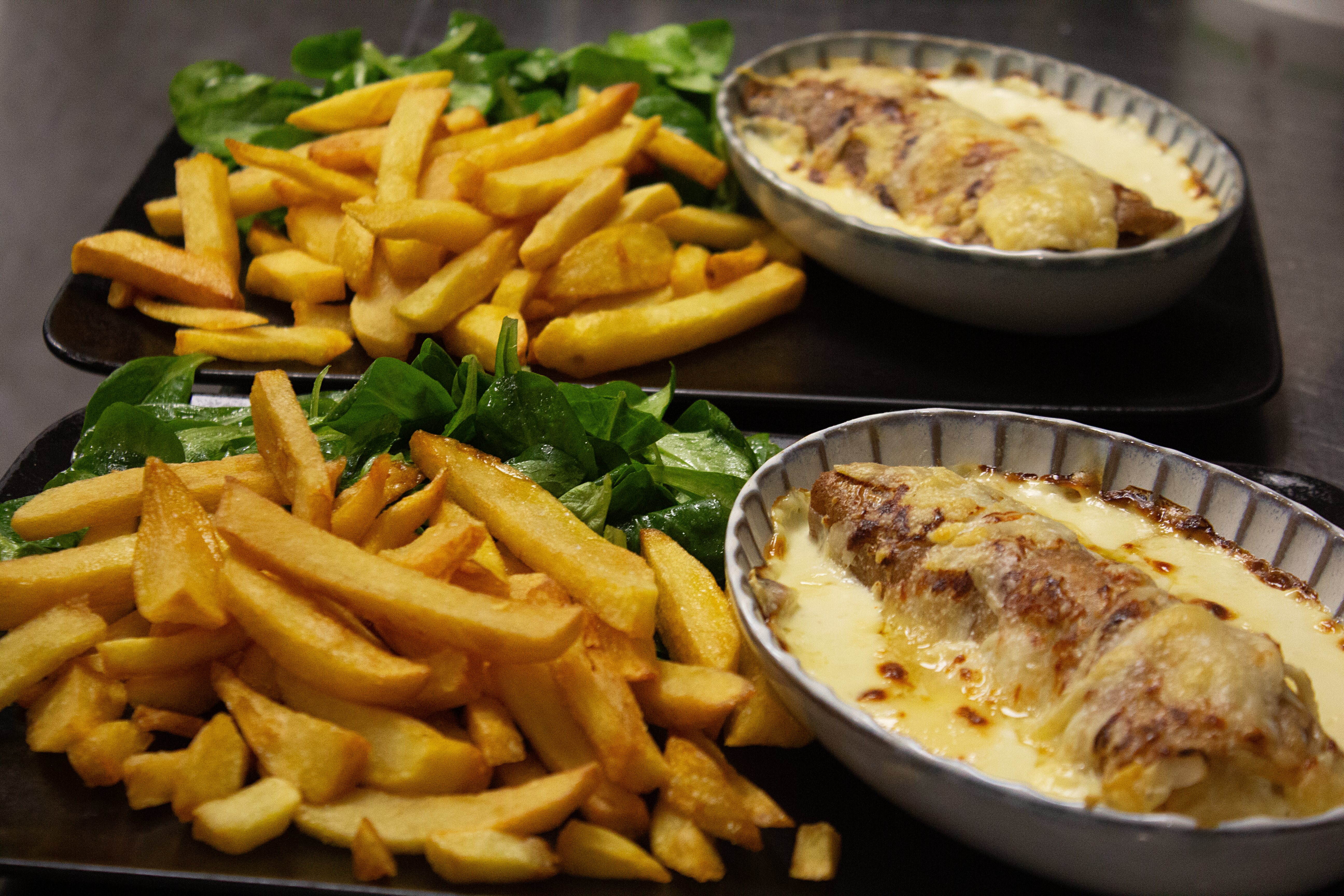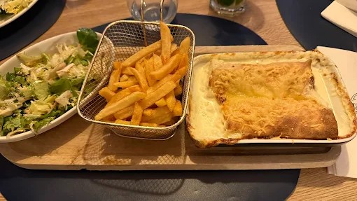 Le midi : une carte de brasserie composée de salades et plats du jour : bruschetta, croque-monsieurs maison, ficelles picardes…