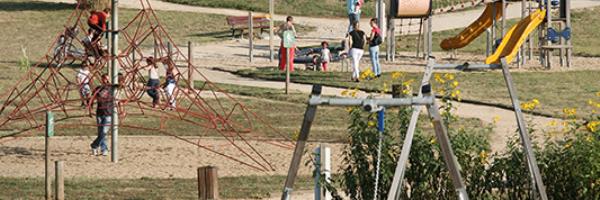 | Tarifs Cet espace ludique comprend 6 bulles de jeux pour chaque âge de 2 à 15 ans : un espace navigateur, une pyramide à cordes, balançoire, toboggans, espace téléphérique… Pour les sportifs, un espace multisports, qui comprend un terrain de gazon synthétique et qui est adapté a divers sports : basket, football, volley ... Autour du stade des pistes pour pratiquer des sports comme la course, le relais et pour les plus agiles du roller en line sont installées. Des accessoires sont également prévus pour les amateurs de skate. Parcours sportifs pour adultes et adolescents. Vous pourrez également pratiquer le parcours santé qui est aménagé autour de l’aire de jeux avec 19 ateliers : abdominaux, barres fixes… Et un grand boulodrome juste à côté pour jouer à la pétanque. Equipements et services aire de jeux - point d'eau potable - poubelles - tables de pique-nique - toilettes |