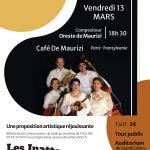 le 12/04/2026 de 11:00 à 12:30Concert Musique contemporaine Général : 25,00 € Général : 20,00 € danseurs inscrits au CCNT ![]() |