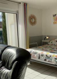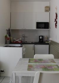 It is composed of a kitchenette equipped with a microwave, a stove with a ceramic hob and a traditional oven, and a top refrigerator. This kitchenette is open on the living room part with a bed in 140, flat screen TV, 1 sofa, 1 table and 2 chairs. The bathroom is equipped with a shower. The toilets are in the sanitary facilities. Bed linen, towels and table linen are provided by the owner.