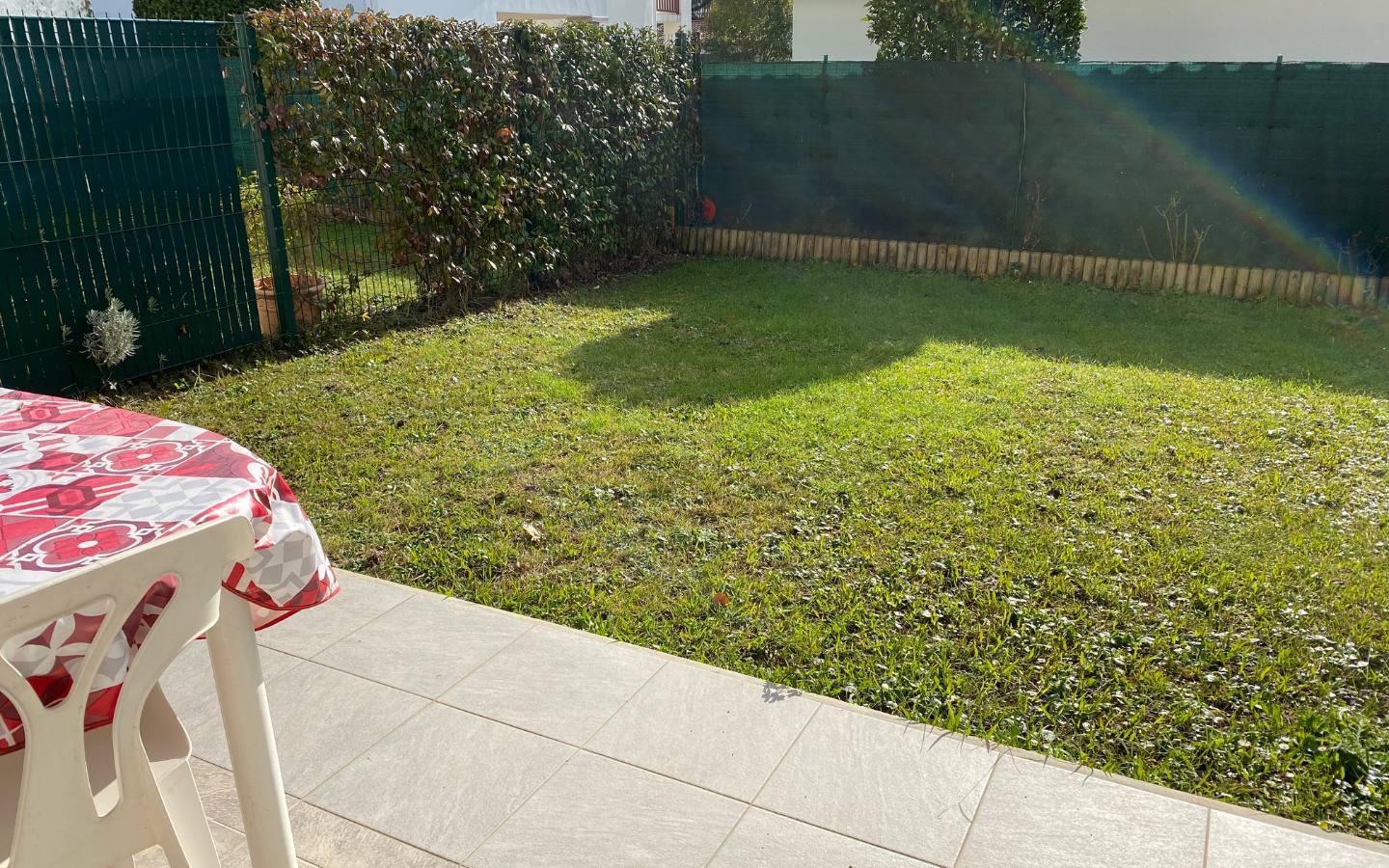 Outside : parking, terrace with garden furniture, small garden.