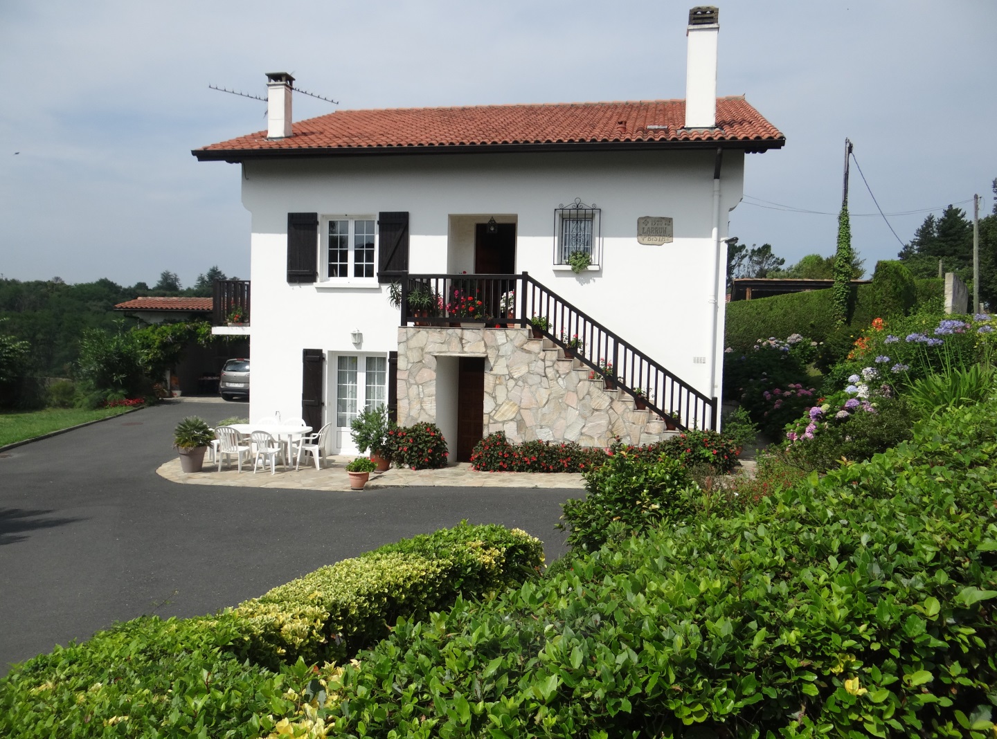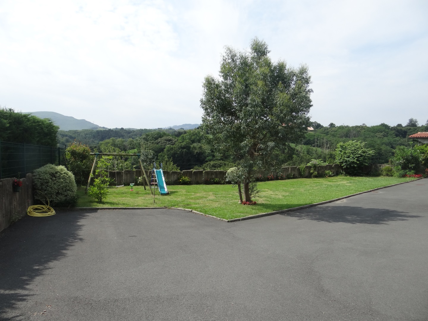 L'appartement se situe au rez-de-chaussée d'une maison basque et offre une belle vue sur les montagnes. Disposant d'une grande cour pour stationner son véhicule et d'un jardin non clos avec toboggan et balançoires, terrasse et salon de jardin. L'intérieur de 80 m2 dispose de tout le confort nécessaire : 2 chambres, 1 salle de bain avec douche, baignoire et double vasque, WC indépendants.