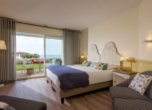 Dans un esprit de maison basque, l'hôtel se situe dans un parc verdoyant de trois hectares le long de la côte au-dessus de la falaise. Nos appartements en prestations hôtelières ont la climatisation, le wifi et une kitchenette entièrement équipée. Ils sont dotés de terrasses avec vue océan ou océan de côté. Profitez sur le site d’une piscine chauffée à débordement de 17 m, d’un tennis et d’une cabine de soins corps et beauté. Notre restaurant Ilura avec son bar, sa terrasse face à l’Atlantique, et le lounge Elaïa assurent les 3 services, petit déjeuner, déjeuner et dîner et vous offrent quatre ambiances différentes pour déguster le meilleur de la gastronomie basque. Pour votre tranquillité, 3 parkings et 2 garages sont à disposition.